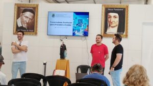Data da publicação: 29 de setembro de 2025 Categoria: NoticiasHoje, dia 29 de setembro, no período da manhã, alguns doutorandos do Laboratório de Micobactérias participaram de uma ação social no Recanto do Sagrado Coração de Jesus, uma instituição de longa permanência para idosos, que também acolhe, com carinho e dignidade, pessoas em situação de rua. No local são oferecidos atendimento médico, alimentação, banho, distribuição de kits de higiene e atividades recreativas — como a animada apresentação de uma banda de forró, que também marcou o dia.